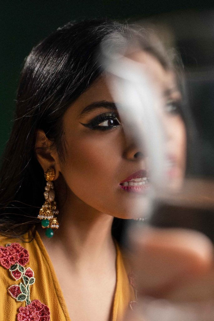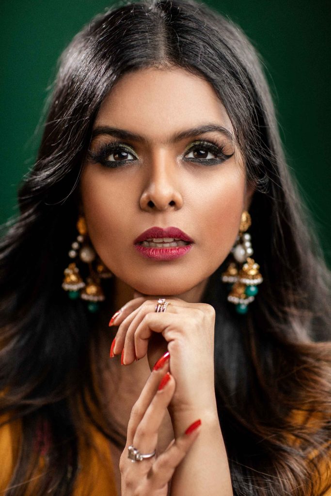 Discover the Elegance of Our Specialized Studio Shoot: Our photography studio was transformed into a canvas of artistry as we employed unique techniques to capture the grace and allure of an Indian lady, resulting in a collection of images that celebrate her timeless beauty